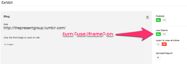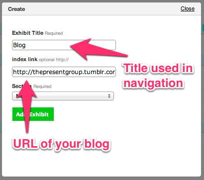 2. Add your exhibit title and enter the URL of your blog for "Index Link"